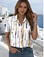 نسائي قميص Buttons طباعة الرسم هندسي عتيق أنيق الحديث كم قصير قبعة القميص قمصان عادية مناسب للبس اليومي أزرق أصفر أحمر أخضر الصيف الربيع
