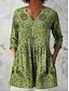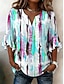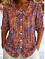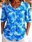 نسائي بلوزة كشكش طباعة الرسم مجرد العطلة يوميا عتيق / معتق 3/4 الكم V رقبة قمصان عادية فضفاض مناسب للبس اليومي مناسب للعطلات أزرق أحمر أرجواني أخضر الصيف الربيع