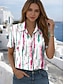 نسائي قميص الرسم هندسي مخطط عتيق استوائي أنيق كم قصير قبعة القميص قمصان عادية مناسب للبس اليومي أخضر زيتي وردي بلاشيهغ أرجواني برتقالي أخضر الصيف الربيع