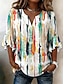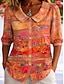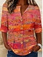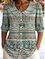 نسائي بلوزة كشكش طباعة الرسم هندسي العطلة يوميا عتيق / معتق 3/4 الكم V رقبة قمصان عادية فضفاض مناسب للبس اليومي مناسب للعطلات أزرق أرجواني برتقالي أخضر الصيف الربيع