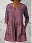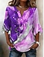 نسائي بلوزة كشكش طباعة الرسم زخرفات العطلة عتيق يوميا 3/4 الكم V رقبة قمصان عادية فضفاض مناسب للبس اليومي مناسب للعطلات أزرق أصفر وردي بلاشيهغ أرجواني الصيف الربيع