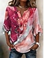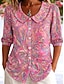 قميص نسائي بلا أزرار بنمط تونك بياقة قميص بأكمام طويلة طباعة مزهرة بأكمام 3/4 ياقة عريضة وردية ماجنطة بيضاء ربيعية غير رسمية أنيقة استوائية عطلة أحجام متاحة