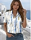 نسائي قميص الرسم هندسي مخطط عتيق استوائي أنيق كم قصير قبعة القميص قمصان عادية مناسب للبس اليومي أزرق أخضر عشبي أخضر الصيف الربيع