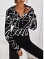 نسائي قميص Buttons طباعة هندسي نشيط يوميا أنيق كم طويل قبعة القميص قمصان عادية مناسب للبس اليومي مناسب للعطلات أسود أبيض الربيع الخريف