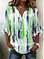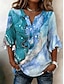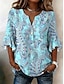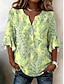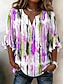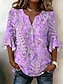 نسائي بلوزة طباعة ورد الرسم العطلة عتيق يوميا 3/4 الكم V رقبة قمصان عادية مناسب للبس اليومي مناسب للعطلات مناسب للخارج أزرق نبيذ أرجواني أخضر الصيف الربيع الخريف