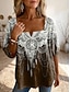 نسائي قميص الرسم هندسي زخرفات بوهيميا العطلة عتيق كم طويل V رقبة قمصان عادية مناسب للبس اليومي مناسب للعطلات مناسب للخارج أزرق أبيض بني فاتح أخضر الصيف الربيع