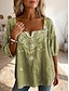 نسائي بلوزة مكشكش Buttons طباعة ورد الرسم زخرفات يوميا أنيق أساسي نصف كم رقبة مربعة قمصان طويلة مناسب للبس اليومي بنفسجي فاتح بني أخضر الصيف الربيع