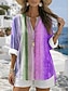 نسائي قميص سترة قمم الصيف Buttons ظل الرسم العطلة يوميا كم طويل V رقبة قمصان عادية مناسب للبس اليومي مناسب للعطلات مناسب للخارج أزرق أرجواني برتقالي أخضر الصيف الربيع