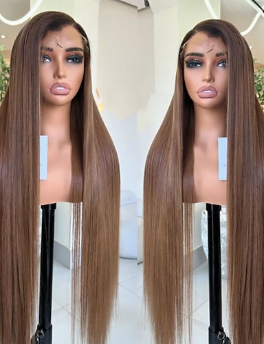شعر مستعار طبيعي 5X5 إغلاق 4x13 إغلاق شعر مستعار الجزء الأوسط شعر برازيلي مستقيم بني متعددة الألوان شعر مستعار 130٪ 150٪ كثافة الشعر شعر هايليت / يدوي غلويليس قبل التقطه من أجل نسائي طويل