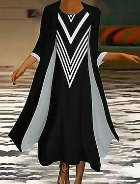 نسائي مجموعة اللباس فستان شيفت لباس صيفي كاجوال ظل هندسي متعدد الطبقات طباعة فستان ميدي 3/4 الكم رقبة عالية مدورة مناسب للبس اليومي أبيض أصفر برتقالي الربيع الخريف عادي