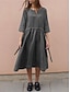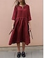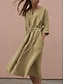 نسائي فستان ميدي كتان قطني صناعي فستان شيفت فستان قفطان لباس غير رسمي موضة الأماكن المفتوحة مناسب للحفلات مناسب للعطلات عادي سهل 3/4 الكم V رقبة أبيض أصفر رمادي الصيف