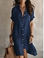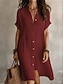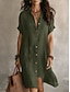 نسائي فستان قصير كتان قطني صناعي فستان شيفت لباس صيفي كاجوال مناسب للبس اليومي فضفاض صالح سهل كم قصير Lapel أزرق أسود نبيذ خضار العسكري الصيف الربيع الخريف