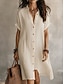 نسائي فستان ميدي كتان قطني صناعي فستان شيفت شيرت دريس فستان أبيض أساسي الحديث مناسب للبس اليومي عطلة نهاية الاسبوع فضفاض صالح سهل 3/4 الكم انقسام العنق أبيض نبيذ أخضر رمادي غامق الصيف الربيع
