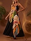 نسائي فستان طويل ماكسي لباس صيفي زلة اللباس موضة الحديث مناسب للبس اليومي شاطئ عطلة نهاية الاسبوع عادي ورق استوائي بدون كم V رقبة أسود الصيف الربيع