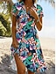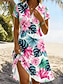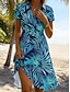 نسائي فستان قصير فستان شكل حرف A العطلة كاجوال بوهو مناسب للبس اليومي شاطئ عادي ورد الرسم كم قصير Lapel أزرق وردي بلاشيهغ أخضر الصيف الربيع