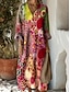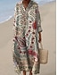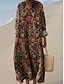 نسائي فستان طويل فستان خفيف فستان شيفت العطلة كاجوال شاطئ مناسب للخارج فضفاض صالح الرسم هندسي مجرد كم طويل V رقبة بني كاكي الصيف الربيع
