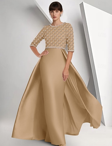فستان سهرة بطول الأرض على شكل شيث عمود أنيق بأكمام نصفية وقصّة العنق الإبداعية رسمي مع خرز