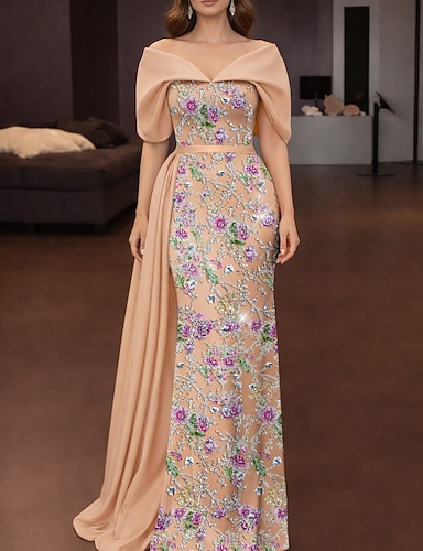 حورية البحر طول الأرض فستان الحفله مطرز بالخرز فستان الحفلة فستان أم العروس بدون كم بدون حمالات أنيق عتيق فاخر كوكتيل رسمي حفلة رسمية مع حصى