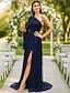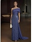 عامودي ذيل مثل الفرشاة فستان زفاف ضيف فستان رسمي فستان سهرة فساتين حفلة موسيقية أنيق بدون كم كتف واحد حفلة تخرج / حفلة موسيقية / حفلة رقص رسمي ساتان سترتش مع مكعب التلوين
