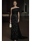 عامودي طول الأرض فساتين السهرة فستان سهرة مع تنورة خارجية الزي الرسمي أنيق التألق فستان أسود قصير بدون كم دون الكتف زفاف رسمي طبقات تفتا مترتر مع بريق حصى تطريز