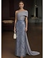 عامودي ذيل مثل الفرشاة متوازي فستان الحفله مطرز بالخرز فستان الحفلة فساتين زفاف الضيوف حفلة التألق بدون كم كتف واحد حفلة تخرج / حفلة موسيقية / حفلة رقص زفاف مع ترتر