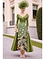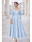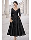 A-الخط طول الساق فساتين متنوعه أنيق عتيق زهري كم طويل V رقبة حفلة في الحديقة زفاف جيبة قماش الجاكار مع طباعة الأزهار شريطة