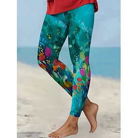 نسائي بنطلون طماق بنطال ضيق مريح أناقة الشارع كاجوال مكتمل الطول ارتفاع متوسط زهور مرونة الخصر طباعة مريح الخارج الأماكن المفتوحة عطلة عطلة نهاية الاسبوع أرزق بحري زهري أخضر داكن فوشيا الخريف عادي