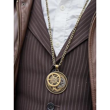 عقد بندول بتصميم ستيمبانك للرجال - مجوهرات تنكرية من سبيكة معدنية باللونين الذهبي والفضي - مثالي للكرنفال والمناسبات التنكرية وعيد الهالوين