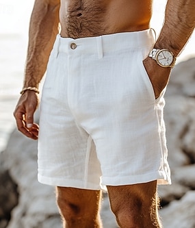 رجالي شورتات شورت من الكتان فستان قصير شورت صيفي شورت الشاطئ جيب Buttons الساق المستقيمة سهل راحة متنفس طول الركبة الأماكن المفتوحة فضفاض مناسب للبس اليومي موضة أناقة الشارع أبيض أزرق البحرية