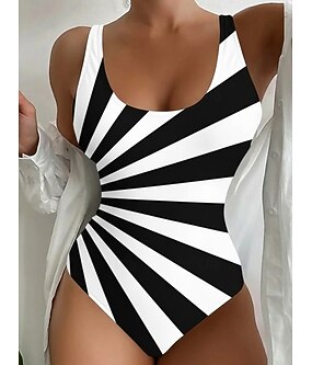 بدلة سباحة مكونة من قطعة واحدة للنساء لتقليل مقاس الجسد بألوان متباينة مونوكيني بقصة مرتفعة للتحكم في البطن خصر عالٍ مريح بدون ظهر للرحلات الشاطئية بألوان قديمة جرافيك هندسي ياقة على شكل U بلا أكمام