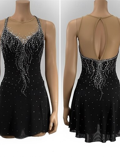 فستان التزلج الراقص نسائي تزلج على الجليد الفساتين أسود بقع فتح الظهر عالية المرونة التدريب منافسة ملابس التزلج كلاسيكي الكريستال / حجر الراين بدون كم التزحلق على الجليد الرقص على الجليد