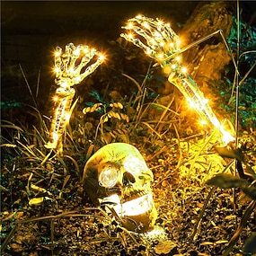 3 عبوات من حصص الهيكل العظمي ذات المظهر الواقعي مقبرة يارد الحديقة حصص الهالوين هيكل عظمي تضيء زينة الهالوين بأيادي هيكل عظمي مع سلاسل خفيفة للحديقة أبيض دافئ / أرجواني