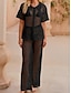 نسائي ملابس السباحة تغطية الجسم ملابس السباحة دانتيل بقع استوائي ملابس الشاطئ لون الصلبة دوران رقبة حرف V دائري كم قصير بدلة سباحة