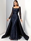 A-الخط حورية البحر فستان أم العروس أنيق عتيق فاخر رقبة مربعة طول الأرض بوليستر كم طويل مع ترتر