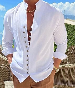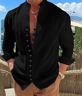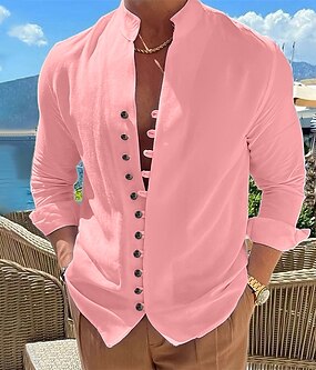 رجالي قميص قميص كتان قميص صيفي ملابس الشاطئ زر حتى القميص سهل فضفاض مناسب للبس اليومي أسود أبيض وردي بلاشيهغ خضار العسكري كم طويل قبة الصيف للربيع والصيف ملابس عادي