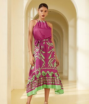 فستان ماكسي طويل بدون أكمام بتصميم صبغ التعادل للنساء مناسب للشاطئ في هاواي للصيف