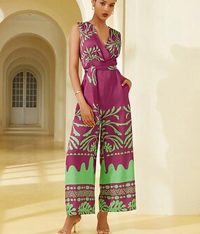 بيكيني نسائي مكون من قطعتين ملابس سباحة بوهو مجمعة خلفية نحيفة للإجازة على الشاطئ ملابس مزهرة بحمالة على شكل حرف V بدون أكمام