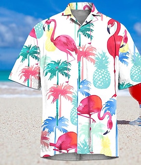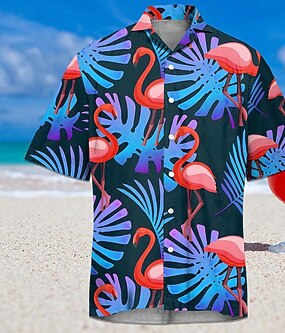 رجالي شجرة جوز الهند النباتات الاستوائية قميص هاواي زر حتى القميص قميص الوها كم قصير ستايل هاواي ملجأ عطلة مناسب للعطلات ملابس الشاطئ الصيف الربيع طوي طباعة ثلاثية الأبعاد قميص بياقة أزرق
