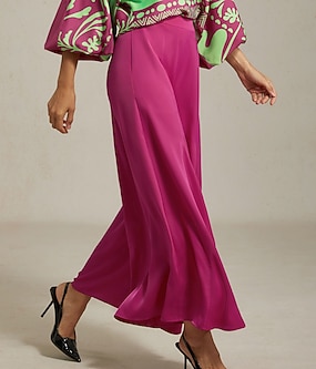 بلوزة بونشو من الساتان بياقة على شكل حرف V وطبعة هندسية