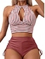 نسائي ملابس السباحة تانكيني 2 قطعة مايوه مثير ملابس السباحة أعلى الرقبة العطلة ملابس الشاطئ ورد الرسم الرقبة الرسن بدون كم بدلة سباحة