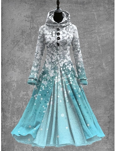 نسائي فستان طويل فستان شكل حرف A كاجوال مناسب للبس اليومي عادي ورد كم طويل مع قبعة أزرق ملكي أزرق أزرق سماوي أخضر الربيع الخريف