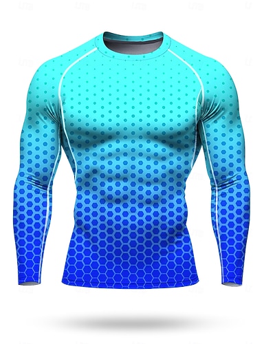 رجالي قميص ضاغط تيشيرت للجري طباعة ثلاثية الأبعاد كم طويل طبقة القاعدة الهندسة سريع جاف ضغط مرونة عالية رطوبة فتل تمرين نادي رياضي التدريب النشط ممارسه الرياضه ملابس رياضية ألبسة رياضية أزرق