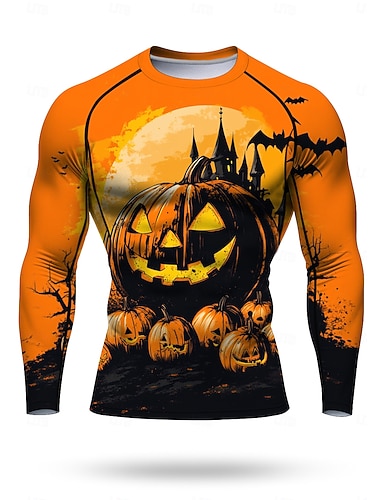 عيد الرعب رجالي تيشيرت للجري قميص رياضي قميص اللياقة البدنية قميص تجريب قميص الجري كم طويل تي شيرت عيد الرعب UPF 50 مقاوم للأشعة فوق البنفسجية ناعم يلف العرق