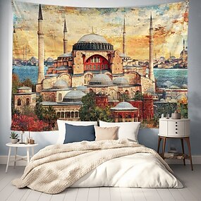 تابع رمضانيات قسطنطينية للتعليق على الجدران، فن الحائط، سجاد كبير، زينة جدارية، خلفية تصوير، بطانية، ستارة، ديكور للمنزل، غرفة النوم، غرفة المعيشة