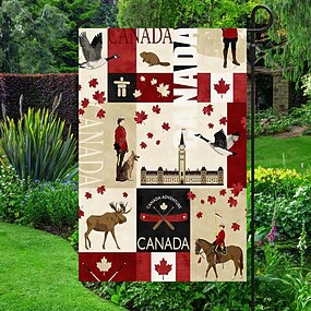 علَم يوم كندا 12 × 18 إنش أعلام حديقة، أعلام حديقة صغيرة وطنية للخارج، أعلام خارجية لزينة الحديقة في جميع الفصول