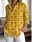 نسائي قميص ورد يوميا أنيق الحديث كم طويل قبعة القميص قمصان عادية مناسب للبس اليومي مناسب للعطلات Buttons طباعة أصفر أزرق أخضر الربيع الخريف
