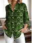 قميص نسائي مزود بأزرار وقبة مميزة بأكمام طويلة جرافيك هندسي يومي أنيق عادي للملابس اليومية باللون الأزرق والأخضر للربيع