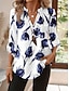 نسائي قميص ورد نشيط يوميا أنيق كم طويل قبعة القميص قمصان عادية مناسب للبس اليومي مناسب للعطلات Buttons طباعة أزرق الصيف الربيع الخريف