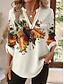 نسائي قمصان مستوحاة من الكتان ورد نشيط يوميا أنيق كم طويل قبعة القميص قمصان عادية مناسب للبس اليومي مناسب للعطلات Buttons طباعة البيج الربيع الخريف