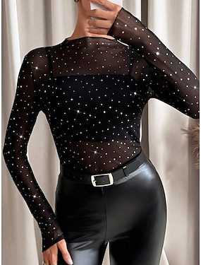 نسائي بلوزة لون الصلبة أنيق كاجوال كم طويل رقبة عالية قمصان عادية مناسب للبس اليومي بقع شبكة أسود الربيع الخريف الشتاء